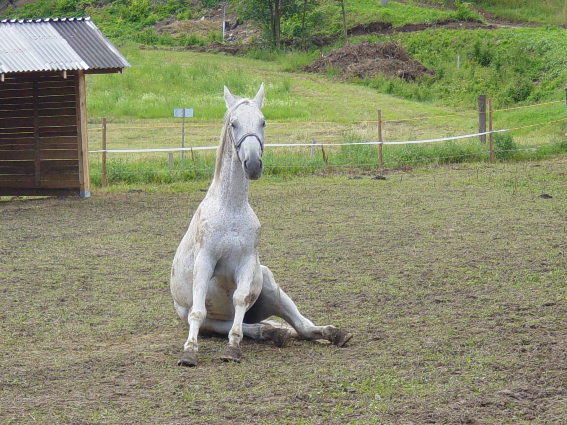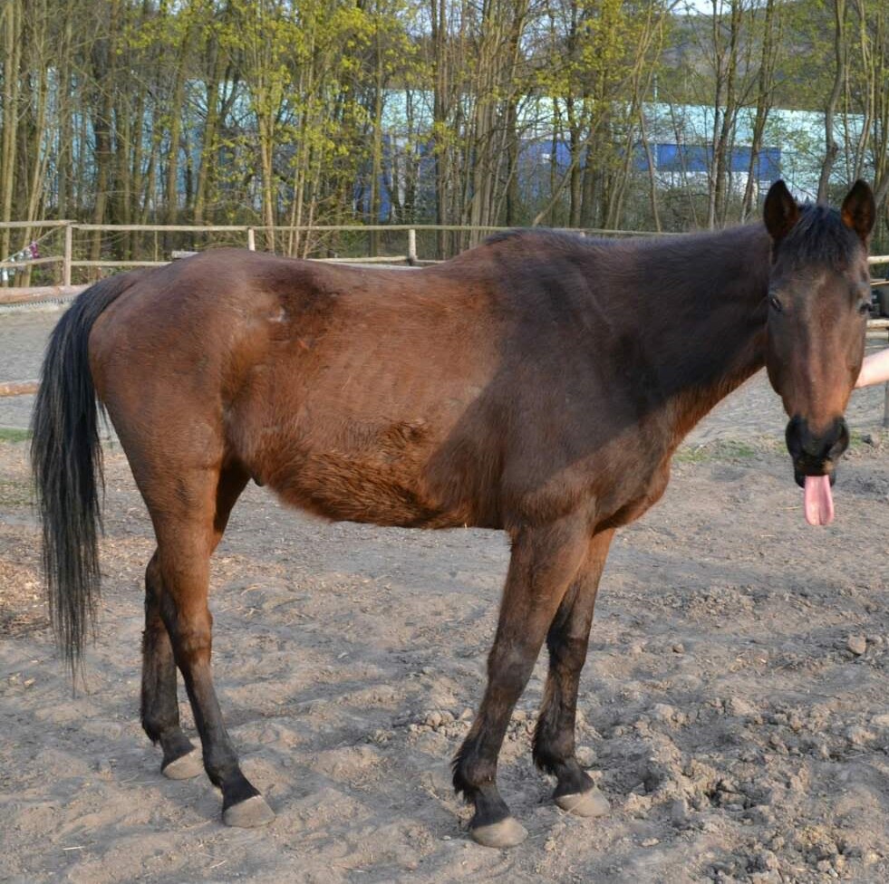 Bohužel se její život zkomplikoval. Když jsme se stěhovali z areálu školního statku do areálu Na Kamenici, měli jsme hodně koní a potřebovali jsme si pro ně prostředí upravit. Proto jsem dva naše koně - hříbata - roční Almu a půl ročního Genia, poslali ke známým "koňákům" na prázdniny, které se protáhly o půl roku. Netušili jsme, že koně tam strádají. Známý chovatel žádné problémy nesděloval. Koně však museli trpět jak nedostatkem péče, tak stravy. Genius nám tam uhynul, a když jsme jeli pro Almu, našli jsme ji ve velmi zuboženém stavu. Ležela a nezvedala se. Na hlavě nad pravým okem měla starou ošklivou ránu. Na pravé přední lopatce a u pravé zadní kyčle měla proleženiny, přičemž tu zadní až na kost. Zavolali jsme veterináře, který ji po příjezdu ošetřil...